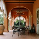 - Rés do chão: Recebe os hóspedes com um amplo hall de entrada, uma sala de estar com uma grande lareira em travertino e uma sala de pequenos-almoços com uma lareira de madeira embutida. Ambas as salas têm vista para um terraço coberto, ideal para tomar o pequeno-almoço ou para relaxar, com vista para o roseiral e para uma das fontes que enriquecem o parque.