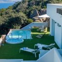 Imersa num grande jardim privado de cerca de 1300 metros quadrados, rico em vegetação típica mediterrânica, a residência possui um jacuzzi exterior, uma piscina infinita e um terraço, espaços ideais para relaxar, oferecendo um espetáculo visual sem paralelo da costa de Gallura. A moradia dispõe de todas as comodidades modernas, bem como de três lugares de estacionamento dentro da propriedade, com acesso privado através de um portão motorizado com controlo remoto.