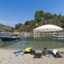 A piscina panorâmica, suspensa entre o céu e o mar, é um oásis de puro relaxamento: uma área de fitness, solário, bar e zona lounge tornam cada momento inesquecível. Uma casa de banho com duche serve o espaço exterior. Finalmente, um acesso privado conduz à praia e ao mar cristalino da baía, proporcionando uma experiência exclusiva e irrepetível.