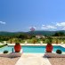 Uma grande varanda coberta, completa com cozinha exterior e área de estar, é o cenário para refeições memoráveis e longas noites de verão sob as estrelas. Alguns degraus conduzem à área da piscina, onde também encontrará uma banheira de hidromassagem e uma zona de relaxamento.