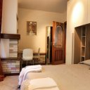 Para a nossa pernoita escolhi, para mim, o mini-apartamento no rés do chão composto por um quarto duplo com kitchenette, casa de banho com jacuzzi e lareira. Para si, o apartamento de três assoalhadas no primeiro andar, composto por cozinha, sala de estar, casa de banho, dois quartos duplos e um individual.