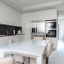 O acesso ao rés do chão é feito através de uma porta blindada com abertura digital, que conduz a uma requintada área de estar em plano aberto. Aqui existe uma cozinha de design totalmente equipada e uma sala de jantar formal que se abre para um encantador jardim interior privado: um oásis de tranquilidade ideal para momentos de relaxamento ou convívio. Uma elegante casa de banho de serviço completa o piso.