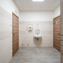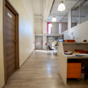 No rés do chão, encontramos um armazém em dois níveis com cerca de 1300 metros quadrados, com portas de acesso que permitem a entrada direta de veículos pesados. A entrada independente com receção independente acolhe elegantemente funcionários e clientes, enquanto as áreas internas incluem uma zona de refeitório e instalações sanitárias. O piso superior é o coração da parte comercial com uma elegante zona de espera: um espaço aberto, bem iluminado, rodeado de janelas de vidro, perfeito para showrooms.