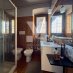 A segunda unidade desenvolve-se a partir do rés do chão, onde um elegante hall de entrada dá as boas-vindas e serve também como um prático espaço de roupeiro/armário, combinando funcionalidade e ordem. A partir daqui, uma escada revestida a pedra conduz ao primeiro (e último) piso, onde se desenvolve a casa principal.