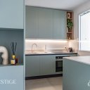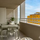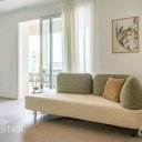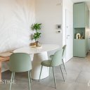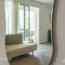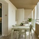 Situado no quarto andar com exposição oeste, o apartamento recebe com uma área de estar luminosa em open-space, onde a sala de estar e a cozinha aberta têm vista direta para um grande terraço com uma agradável vista lateral para o mar: um espaço concebido para desfrutar plenamente do ar livre, entre momentos de convívio e relaxamento.