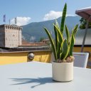 É de manhã que o sol da primavera espreita para a nossa sala de estar branca, beijando suavemente a parede diagonal e criando um triângulo de luz dourada. Riva del Garda é um lugar encantado, um lugar dos sentidos, onde o chique se mistura com o antigo, onde as montanhas roçam o lago e os sonhos abraçam a realidade. Aqui, os amantes do estilo encontram o seu oásis, entre o Valle dei Laghi do Trentino, a Lombardia e a região de Verona, onde o lago dança com os Alpes e a neve acaricia as oliveiras.